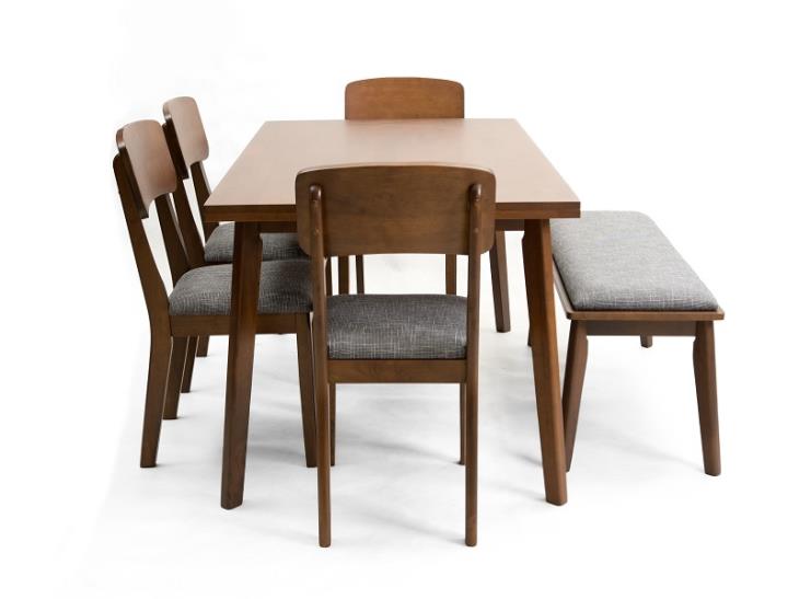 طاولة طعام أوليفر 4 كراسي مع مقعد باللون البني والرمادي