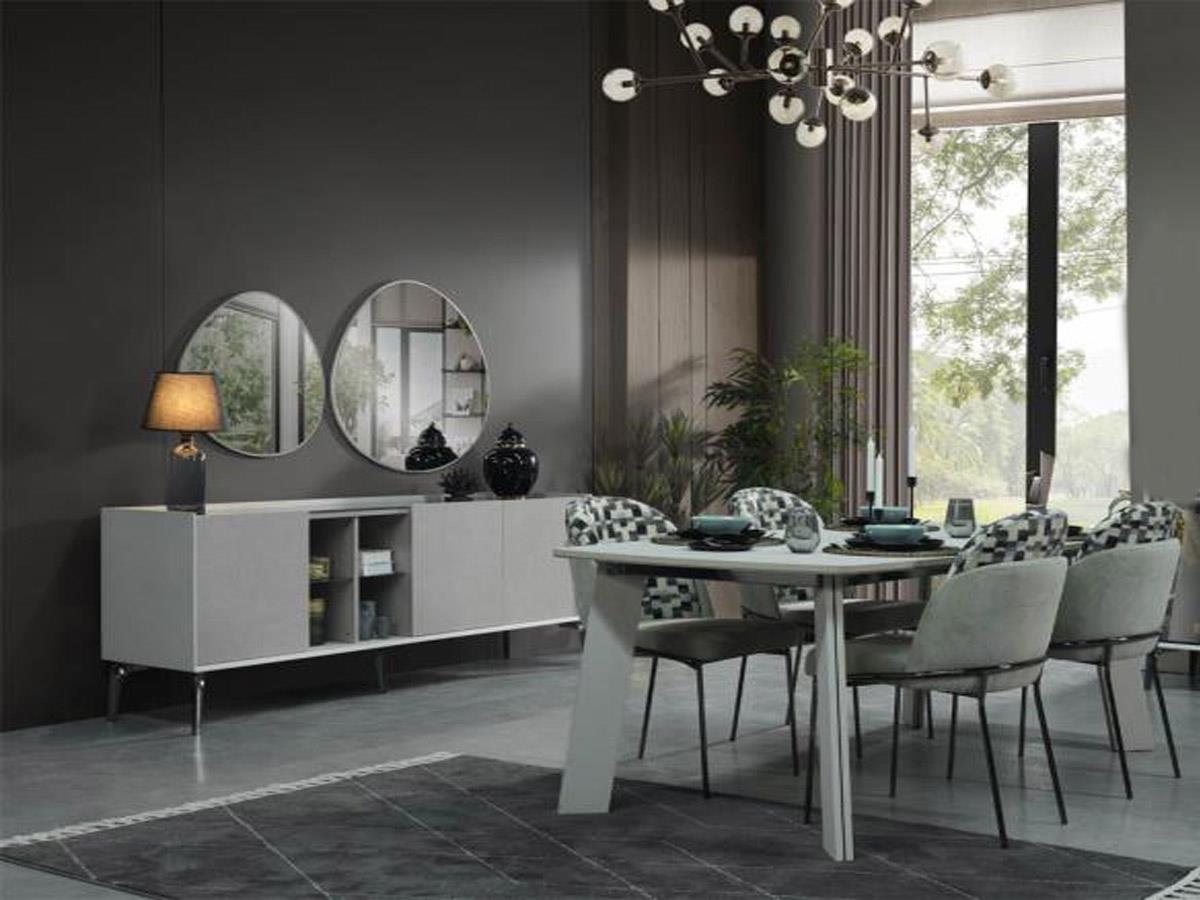 و الفريدة ، المكونة من 8 كراسي مميزة ذات اللون رمادي أنيق وتفاصيل من نقوش جذابة تزيد من جمالها