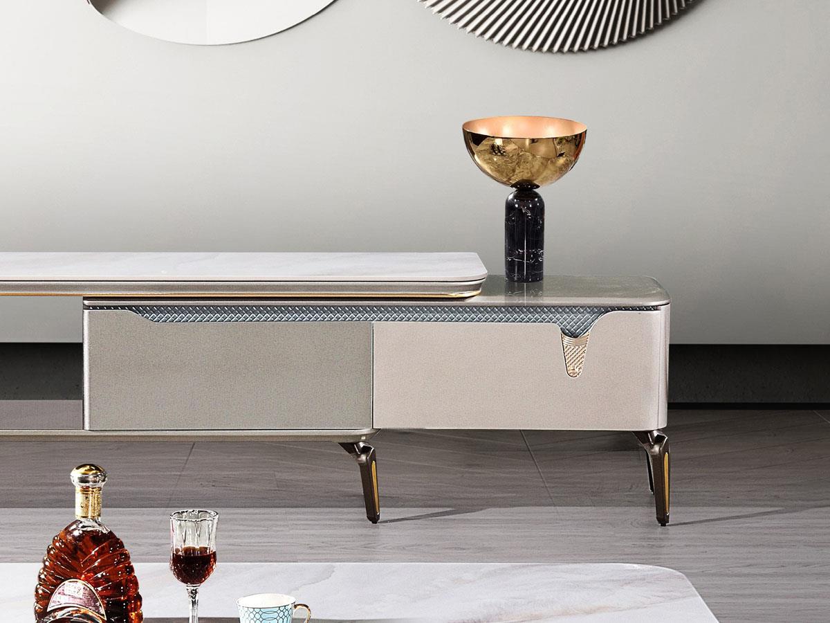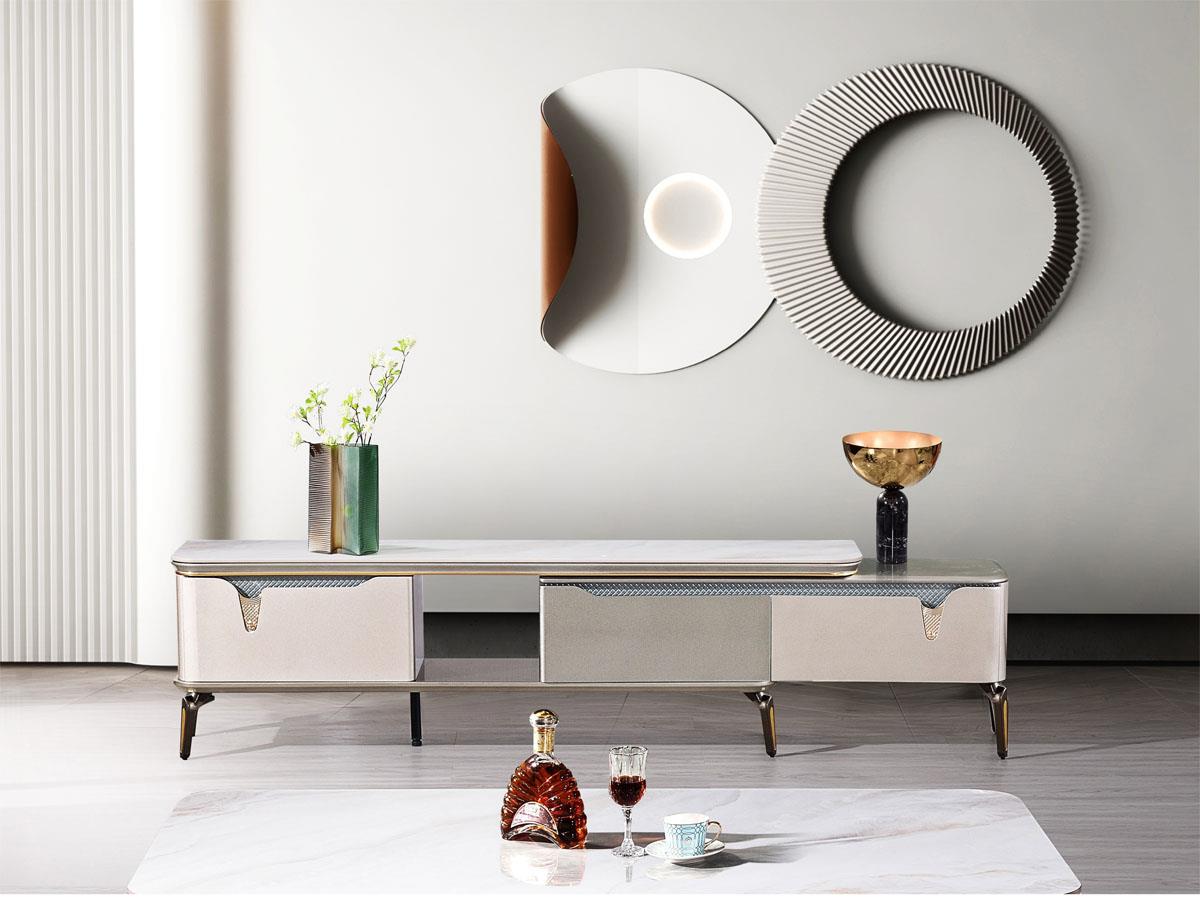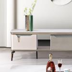 Beige and light gray TV table Immerse your home with a touch of beauty and elegance, by acquiring and adding this practical piece to your living room, to support the TV in an aesthetic and elegant way, designed in an attractive and distinctive style, with a luxurious marble surface and an elegantbeige and picturesque light gray color, and with storage units that provide you with ample space for organization and storage in a manner It suits your needs and your space, designed practically and with elegant details that increase its beauty and splendorIn addition to its easy-to-use style, and its high-quality materials to ensure durability and sustainability, it is made with the utmost care to suit your taste and your home.