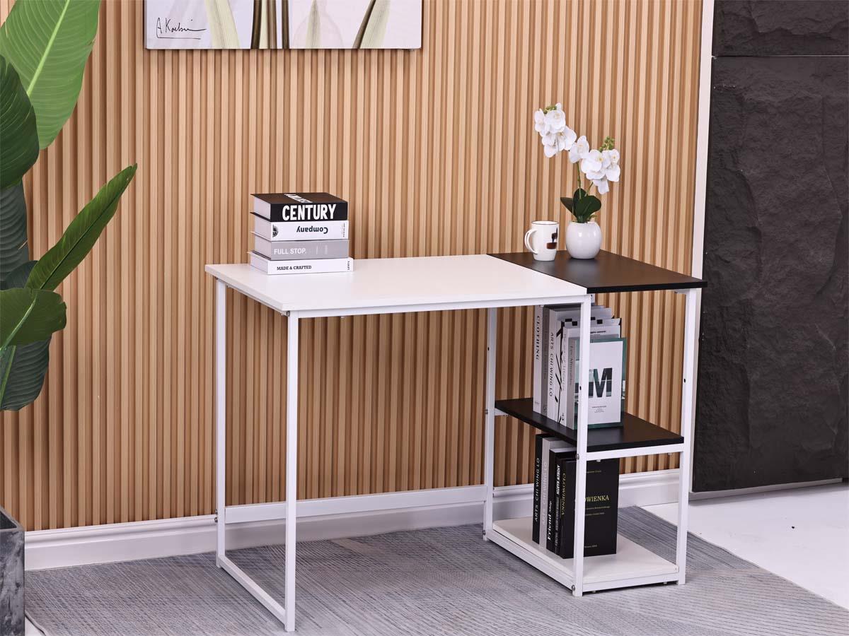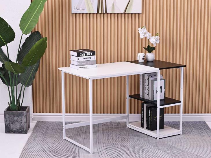 computer desk White color The charm of wood is endless and its charming elegance distinguish your home with this innovative piece of charming white color,A modern wooden desk with an innovative and elegant design that is versatile and has exposed storage shelvesIt ensures easy storage and attractive and elegant space utilization for a distinctive practical use experience.