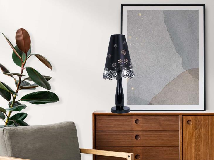 ابجورة استاند عصرية مميزة ذات قاعدة فنية مبتكرة باللون الأسود الفاخر