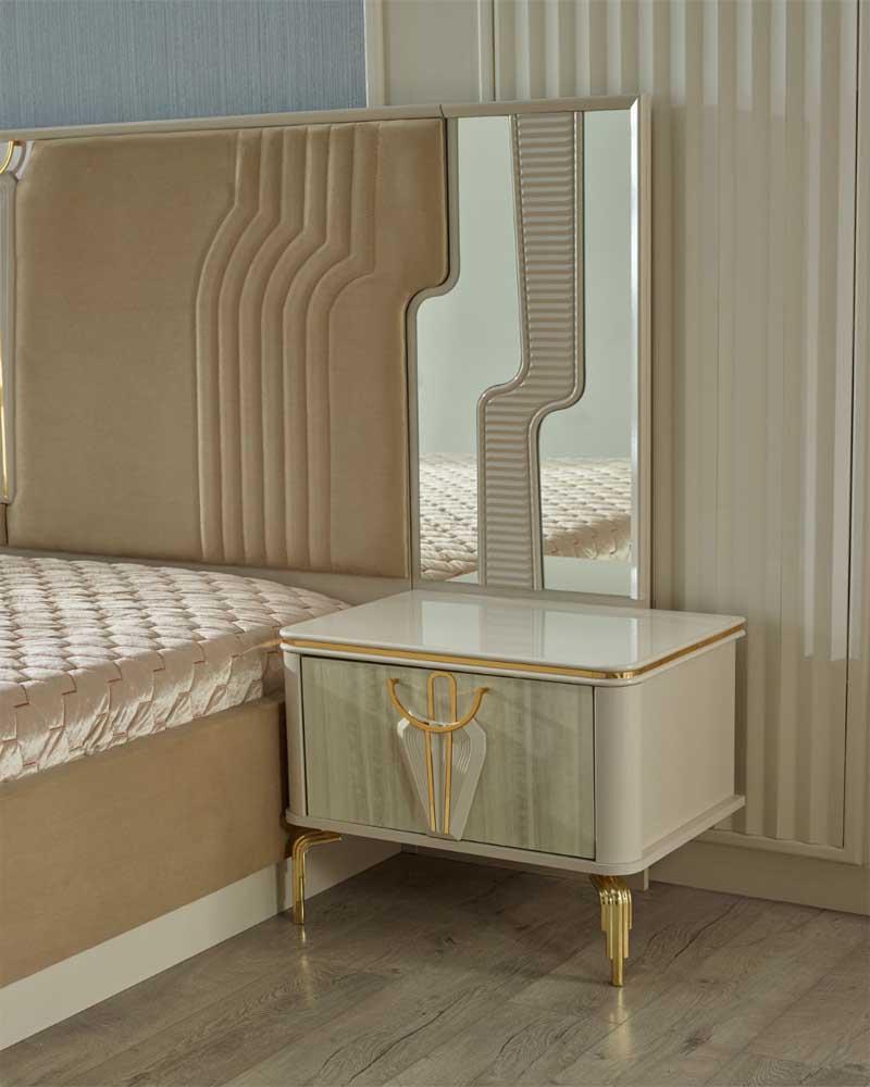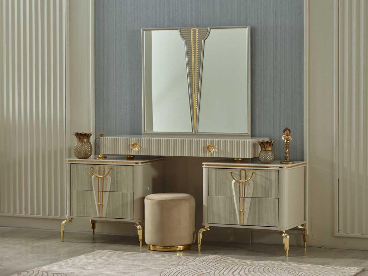 طقم غرفة نوم برلاين لون بيج و ذهبي 8 قطع