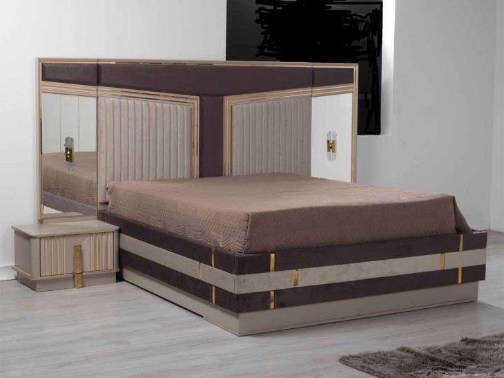 طقم غرفة نوم مونوكا لون بيج و بني غامق 8 قطع