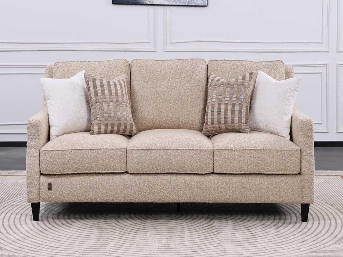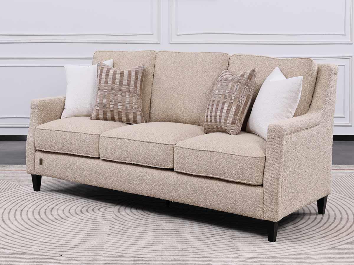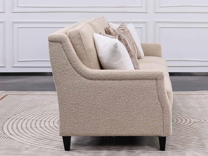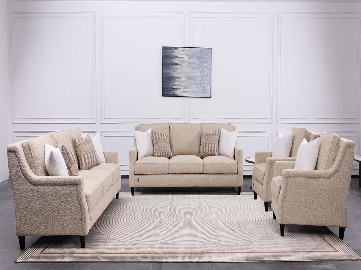 Renew the appearance of your home, and add more beauty to your living room, by choosing this elegant triple sofa, made of high-quality eucalyptus plywood to ensure durability and durability, with reinforced foam filling for a comfortable seating experience, and lined with luxurious Chanel fabric in a sophisticated beige color, designed by It is spacious and comfortable to enjoy an ideal seating experience. It comes with high wooden legs in dark brown to ensure ease of transportation and movement. This sofa is practical and