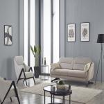كنبة ثلاثية واسعة و مريحة باللون البنى الفاتح الجذاب + كنبة ثلاثية واسعة باللون البنى الفاتح الساحر + 2 كرسي مفرد باللون البيج الأنيق ,