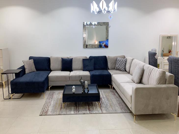 (كنبة ثلاثية يسار بذراع ثابت ومساحة واسعة + كنبة زاوية أنيقة + كنبة مزدوجة يمين بذراع ثابت وعمق واسع + كنبة مفردة على شكل بوف لراحتك)
