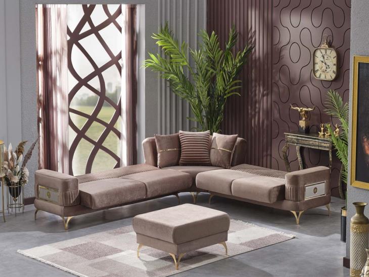طقم كنب زاوية أسبندوس 4 قطع بني غامق
