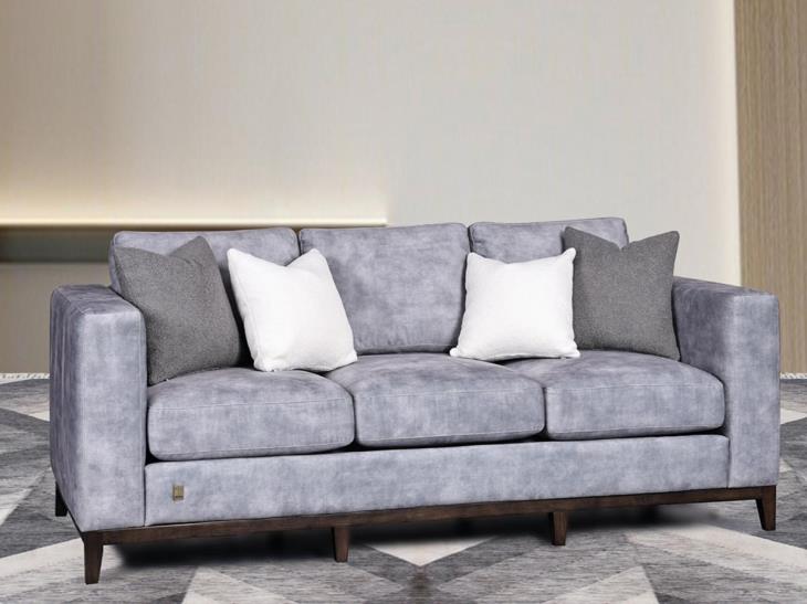 Immerse the details of your home with beauty and charm, by adding charming modern pieces, and by choosing this distinctive triple sofa with a unique design, made of highly durable eucalyptus wood board and filled with sponge with a thickness of up to 35 to ensure sustainability and endurance, and it is also woven from the finest types of high-end velvet fabrics in a striking grey color, featuring elegant wooden legs that increase its beauty and splendor, and to ensure ease of transportation and movement, a distinctive modern piece that suits your taste and space.